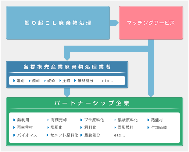 混練・造粒・分級・洗浄・固化・ 堆肥化・管理型埋立処分・焼却・焼成 |